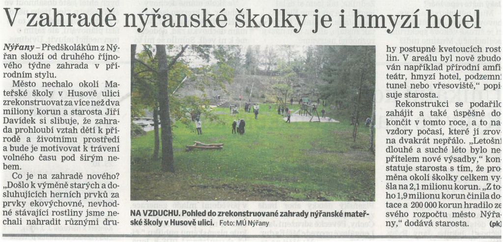 V zahradě nýřanské školky je i hmyzí hotel