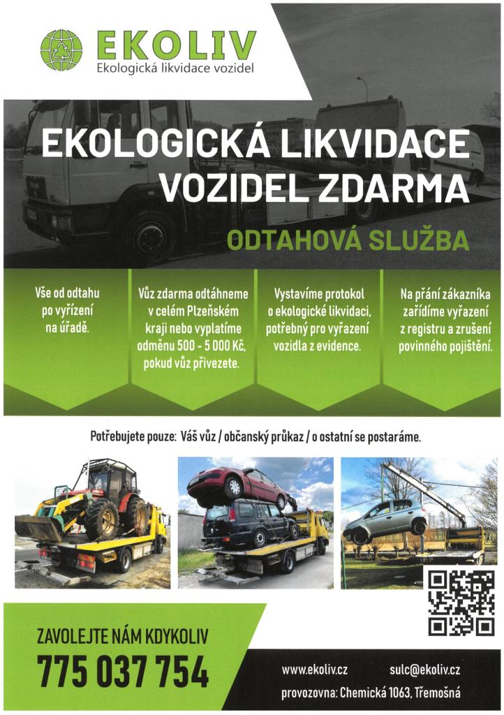 - Vůz zdarma odtáhnou v celém Plzeňském kraji nebo vyplatí odměnu 500 - 5.000 Kč, pokud vůz přivezete sami.